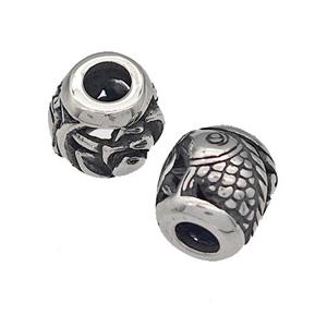 316 Stainless Steel Barrel Beads Fish Hollow Large Hole Antique silver, approx 9-10mm, 4mm hole