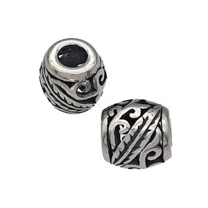 316 Stainless Steel Barrel Beads Cancer Hollow Large Hole Antique silver, approx 9-10mm, 4mm hole