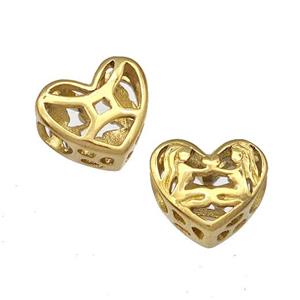 • Stainless Steel Heart Beads Zodiac Virgo Large Hole Hollow Gold Plated, approx 12mm, 4mm hole