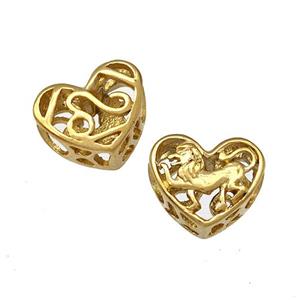 • Stainless Steel Heart Beads Zodiac Leo Large Hole Hollow Gold Plated, approx 12mm, 4mm hole
