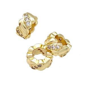 Copper Rondelle Beads Pave Zircon Large Hole Gold Plated, approx 8.5mm, 3mm hole