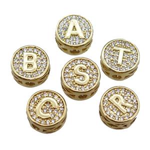 copper alphabet beads pave zircon, mixed letter, gold plated, approx 10mm
