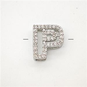 Copper Letter-P Beads Pave Zirconia Platinum Plated, approx 7-11mm