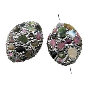 Clay oval Beads paved rhinestone with Tourmaline, approx 18-28mm