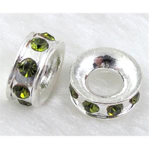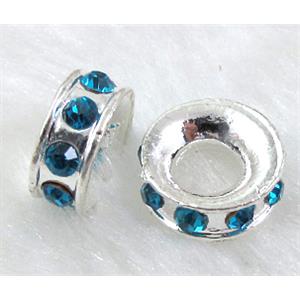 alloy beads with rhinestone, silver plated, 10mm dia, hole:5mm