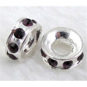 alloy bead with rhinestone, silver plated, 12mm dia, Deep Purple