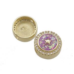 Copper Button Beads Pave Fuchsia Fire Opal Star 18K Gold Plated, approx 12mm