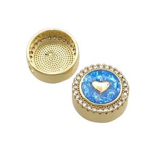 Copper Button Beads Pave Blue Fire Opal Heart 18K Gold Plated, approx 12mm