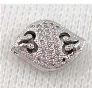 copper spacer bead pave zircon, platinum plated, approx 10x16mm
