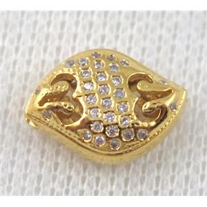 round copper beads with zircon, gold plated, 16mm dia, 2mm hole