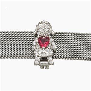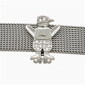 Copper Watchband Beads Pave Zirconia Kids Boy Flat Hole Platinum Plated, approx 13-20mm, 2-10mm hole