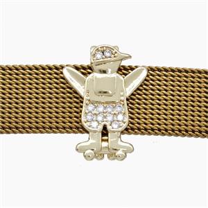 Copper Watchband Beads Pave Zirconia Kids Girls Flat Hole Gold Plated, approx 17-19mm, 2-10mm hole