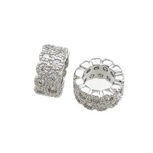 Copper Rondelle Beads Pave Zircon Large Hole Platinum Plated, approx 10mm, 4mm hole