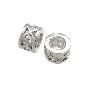 Copper Barrel Beads Pave Zircon Large Hole Platinum Plated, approx 10-10.5mm, 5mm hole