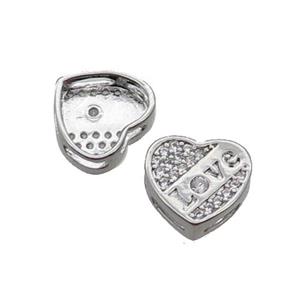 Copper Heart Beads Pave Zircon LOVE Platinum Plated, approx 10.5mm