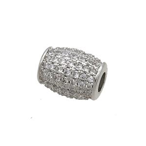 Copper Barrel Beads Pave Zircon Large Hole Platinum Plated, approx 8-10mm, 3mm hole