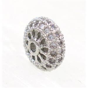 • copper rondelle bead paved zircon, platinum plated, approx 6mm dia, 2.5mm hole