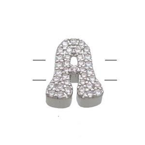 Copper Letter-A Beads Pave Zirconia 2holes Platinum Plated, approx 10-13mm