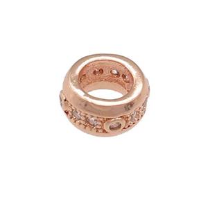 copper beads paved zircon, rondelle, rose gold, approx 6x10mm