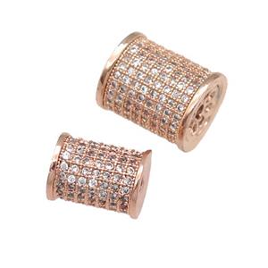 copper barrel beads pave zircon, large hole, rose gold, approx 9.5mm, 4mm hole
