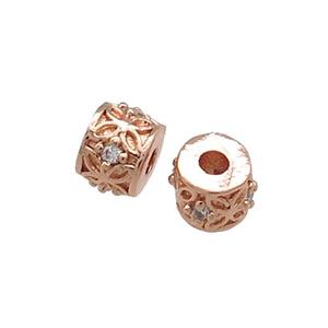 • Copper Tube Beads Pave Zircon Large Hole Rose Gold, approx 10mm