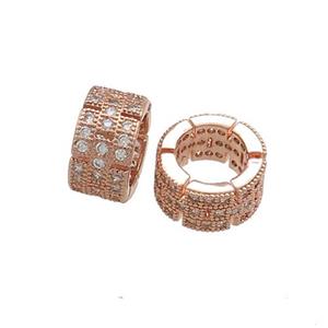 Copper Tube Beads Pave Zircon Large Hole Rose Gold, approx 10mm