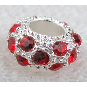 alloy bead with rhinestone, silver plated, 11-12mm dia, hole:5mm