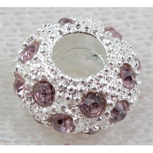 alloy bead with rhinestone, silver plated, 10-11mm dia, hole:5mm