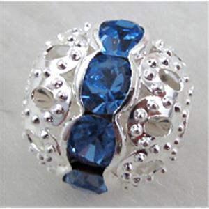 Clear Rondelles Middle East Rhinestone Beads with Silver Plated, 12mm dia