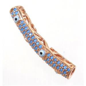 copper tube beads paved zircon with evil eye, turq, rose gold, approx 5x28mm