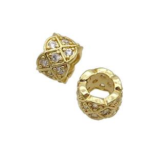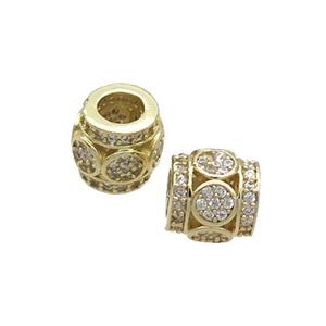 Copper Tube Beads Pave Zircon Large Hole Gold Plated, approx 7.8mm, 4mm hole