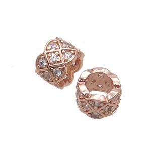 Copper Tube Beads Pave Zircon Large Hole Rose Gold, approx 7-8mm, 2.5mm hole