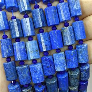 Natural blue Lapis Lazuli Beads faceted tube Lazurite, approx 10x14mm