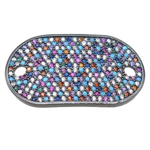 copper oval connector pave zircon, black plated, approx 18-30mm