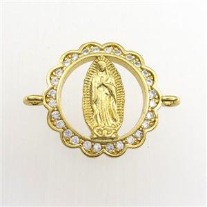 copper circle connector paved zircon with Jesus, gold plated, approx 15mm dia