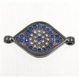 copper oval connector paved zircon with evil eye, black plated, approx 13x24mm