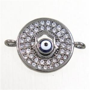 copper circle connector paved zircon with evil eye, black plated, approx 12.5mm dia