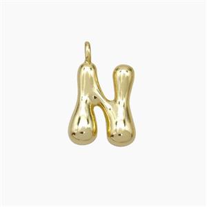 Copper Letter-N Pendant Pave Zirconia Gold Plated, approx 10-13mm