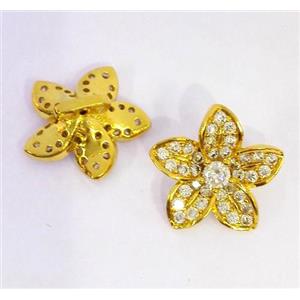 copper clasp paved zircon, clover, gold plated, approx 14-25mm