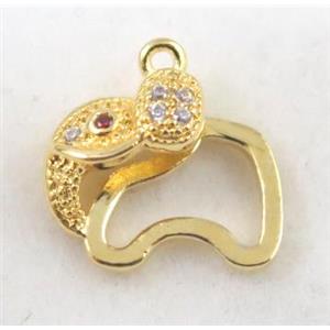 copper eye connector paved zircon with 3loops, gold plated, approx 8-16mm