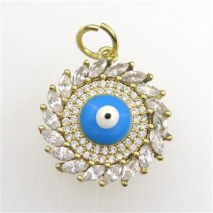 • copper sun pendant paved zircon with evil eye, mix color, approx 20mm dia