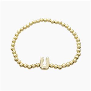 • Copper Letter-U Beads Pave Zirconia Gold Plated, approx 7-11mm