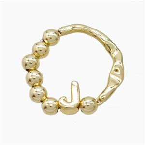 Copper Bracelet With Letter-J Pave Zirconia Gold Plated, approx 6-9mm, 19-24cm length