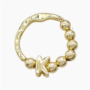 Copper Bracelet With Letter-K Pave Zirconia Gold Plated, approx 6-9mm, 19-24cm length