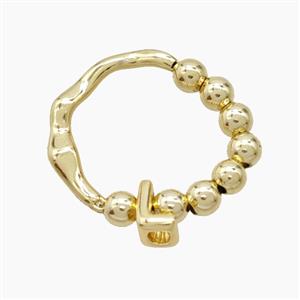 Copper Bracelet With Letter-L Pave Zirconia Gold Plated, approx 6-9mm, 19-24cm length