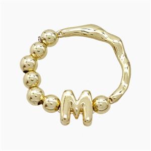 Copper Bracelet With Letter-M Pave Zirconia Gold Plated, approx 6-9mm, 19-24cm length