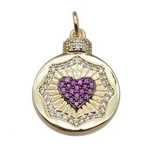 copper circle heart pendant pave zircon, gold plated, approx 16mm