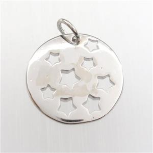 copper circle pendant pave zircon, platinum plated, approx 17mm dia