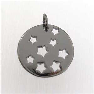 copper oval pendant with star enameling, black plated, approx 12-16mm