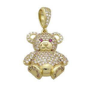 Copper Bear Pendant Pave Zircon Gold Plated Mixed, approx 24-25mm